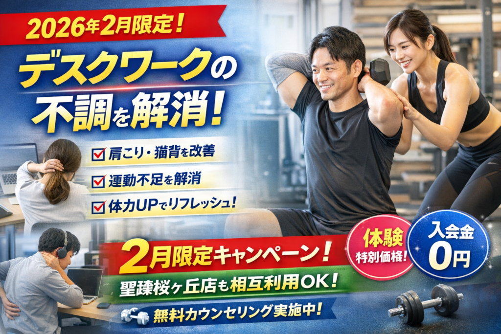 【2026年2月限定】肩こり・猫背・運動不足を根本改善!多摩市・稲城市のデスクワーカー必見|BEYOND 多摩センター店で体も心もリセット!